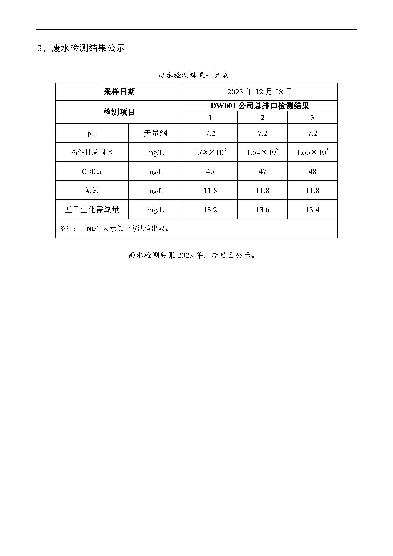 2023 年第(dì) 3 季度環境(jing)檢測信息(xī)公示