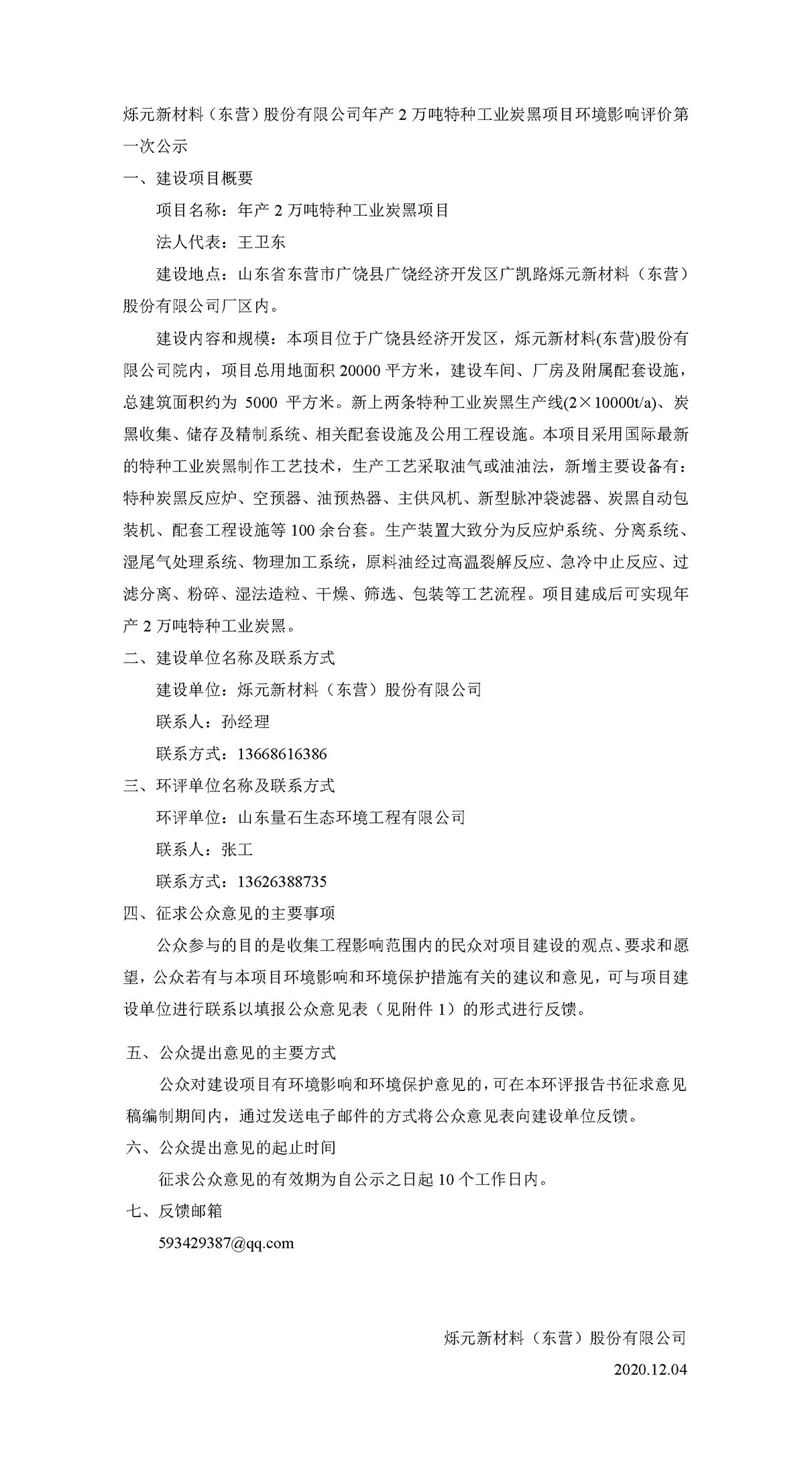公司(si)年産2萬噸特種(zhong)工業炭黑項目(mu)環境影響評價(jia)第一次👨❤️👨公🐕示