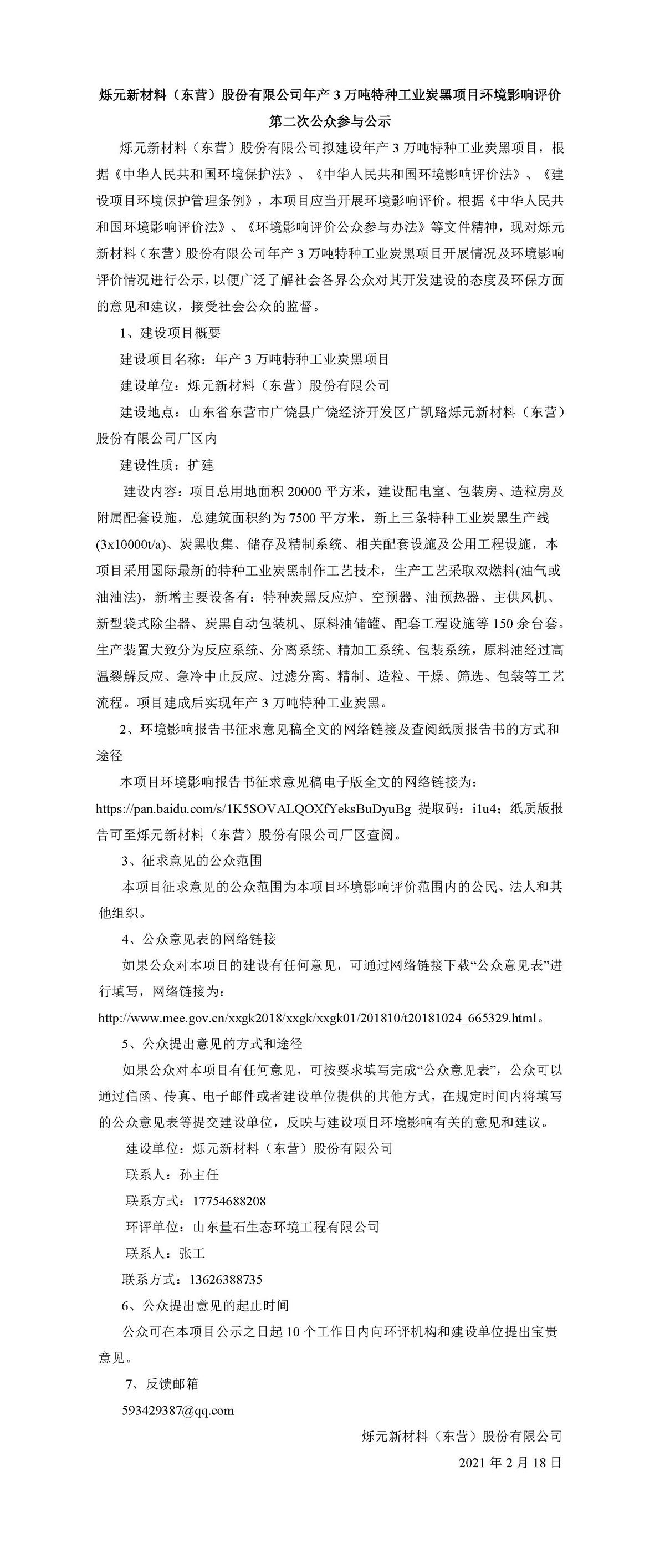 公司(si)年産3萬噸(dun)特種工業(yè)炭黑項目(mu)環境影響(xiǎng)評價👈第二(èr)次公示